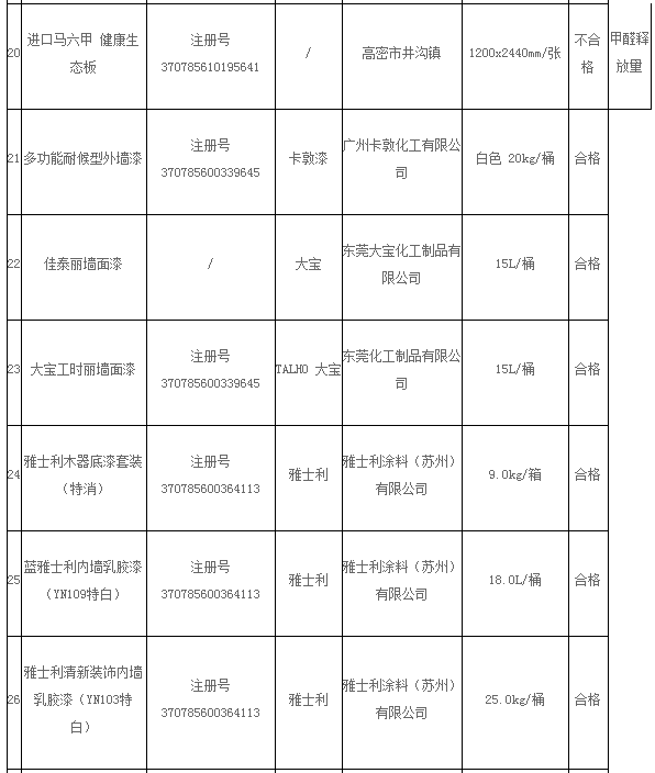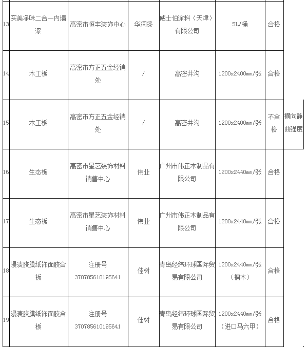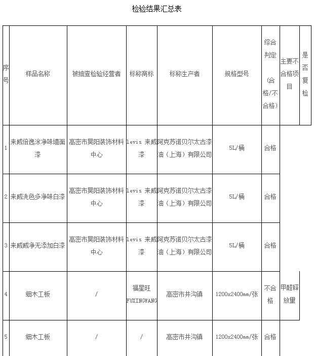【中國涂料采購網(wǎng)】按照山東省工商局《2016年全省流通領域商品質(zhì)量抽查檢驗工作計劃》,依據(jù)《消費者權益保護法》、《產(chǎn)品質(zhì)量法》和《流通領域商品質(zhì)量抽查檢驗辦法》等法律法規(guī)規(guī)定,濰坊市工商局委托譜尼測試集團于2016年10月10日至11月20日在昌邑市、高密市的部分商場、專賣店和批發(fā)市場共抽樣檢驗裝飾裝修材料51組,其中合格47組,不合格4組。