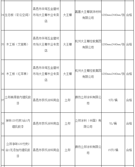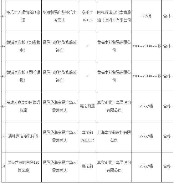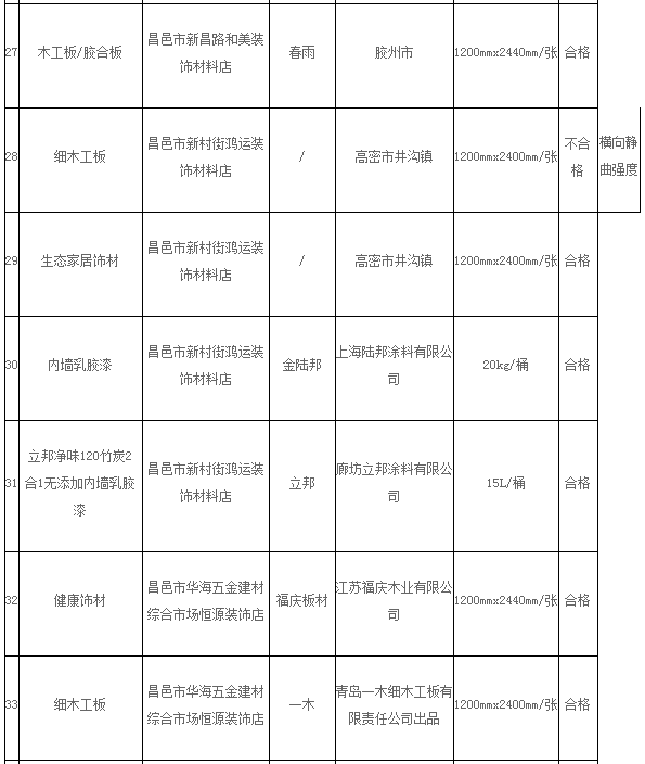 濰坊市工商局公布裝飾裝修材料抽檢不合格名單