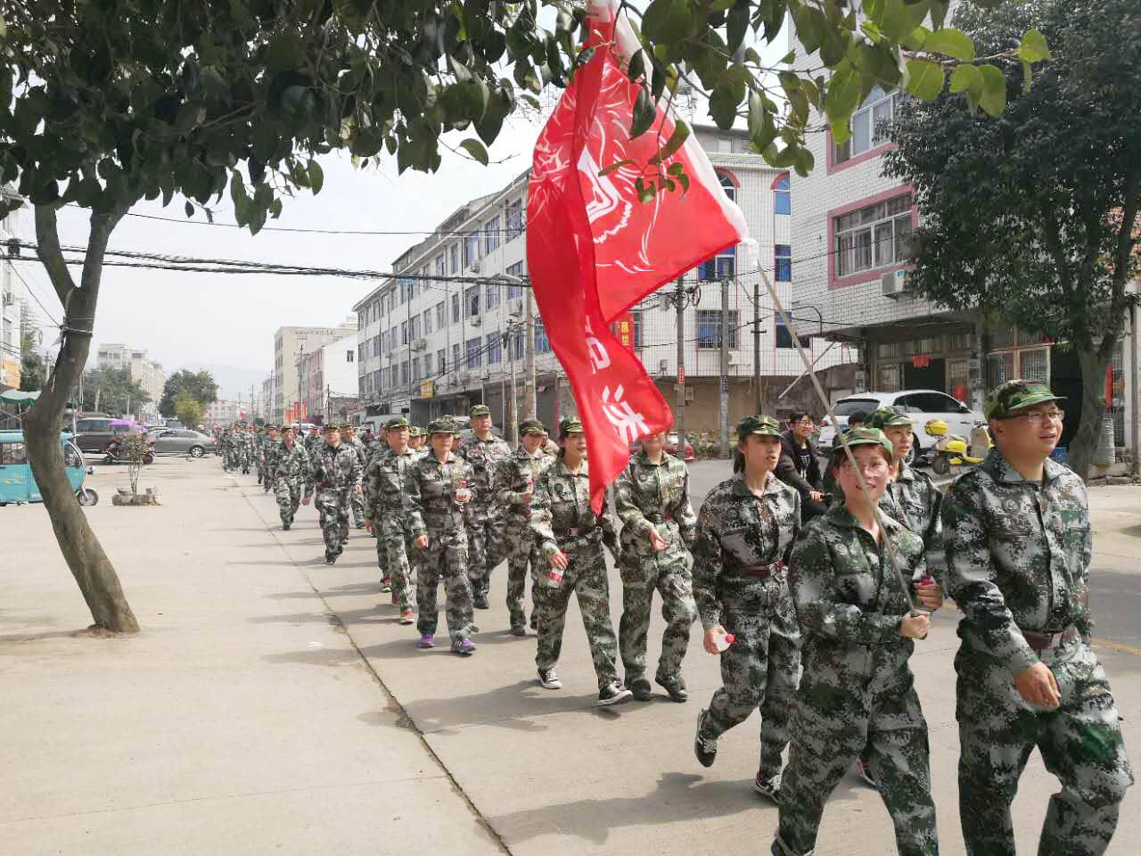 活動當日艷陽高照,在四位教官(公司員工)的帶領下,志強漆總經理盧志強在國旗下講話宣布志強漆2017年第一季軍事拉練活動正式開始。盧總以身作則帶領各級領導和黨員干部以及公司各崗位員工參與到此次軍事拉練活動中,員工們熱情高漲地投身到各個項目的訓練上。此次軍事拉練活動主要有軍姿、立正、稍息、跨立、行進等基本步伐動作訓練和6.1公里長跑拉練。特別在拉練過程中,特別感動的瞬間是一些職員即使已經體力耗盡,渾身無力也仍不放棄,絕不向困難低頭,并且堅持到最后,在我們日常的工作中特別需要這種永不放棄的精神,面對困難我們必須迎難而上,披荊斬棘,克服種種艱難,這正是志強人28年來艱苦奮斗、自強不息的精神寫照。