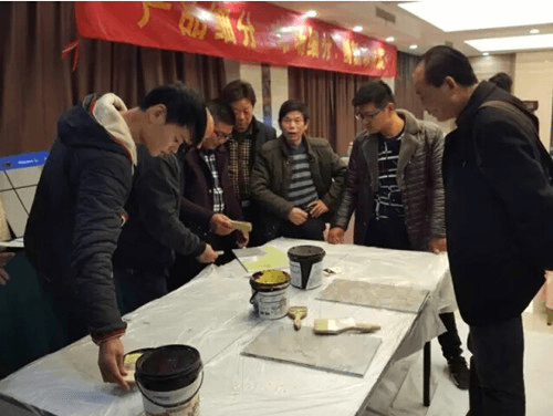 會議現場展出了巴德士今年重點推廣的裝修漆產品,有的產品已更換新包裝,還有不少新產品,此外還增加了藝術涂料和防水輔材等品類,不少經銷商對巴德士推出的藝術涂料十分感興趣,他們現場體驗了產品后,紛紛表示今年一定要重點推廣藝術涂料,這是做好裝修漆的關鍵。