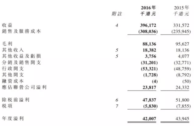 2016年度,公司股東應占溢利下降約6.1%至4160.3萬港元,主要由于玩具及消費電子產品涂料市場的激烈競爭及中國經濟增長放緩,及人民幣兌港元匯率的貶值,加上本公司股份于2015年12月1日于香港聯合交易所有限公司主板上市后的額外公司開支,對毛利構成不利影響。倘不計及零的上市開支,本集團錄得溢利4160.3萬港元,較上年相當于下跌約19.3%。2016年,每股盈利為6.9港仙。