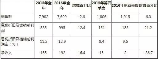 高品質中間體業務板塊2016年的銷售額為17.4億歐元左右,與上一年度的18.3億歐元相比下降了4.6%。由于農用化學品行業第四季度的需求下滑,息稅折舊及攤銷前利潤下降了3.8%,從上一年度的3.39億歐元下降至3.26億歐元。不過,息稅折舊及攤銷前利潤率與上一年度相比略微增長,從18.6%增長至18.7%。