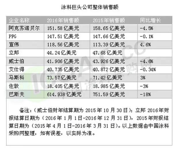 全球外資涂料巨頭企業(yè)業(yè)績(jī)分析