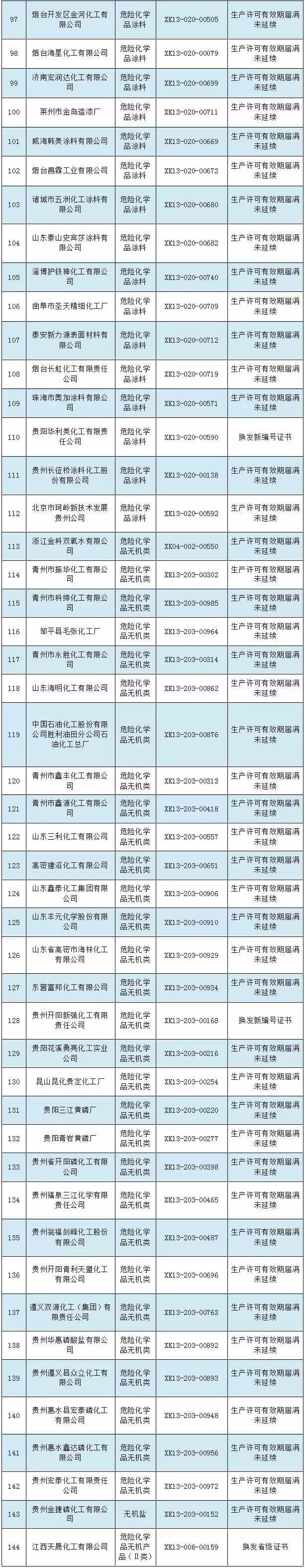 根據《中華人民共和國工業產品生產許可證管理條例》(國務院令第440號)、《質量監督檢驗檢疫行政許可實施辦法》(質檢總局令第149號)和《中華人民共和國工業產品生產許可證管理條例實施辦法》(質檢總局令第156號),因換發省級證書、生產許可有效期屆滿未延續、企業依法整體關停退出等情形,質檢總局已注銷浙江金質麗化工有限公司等200多家企業工業產品生產許可證,現將名單予以公布。