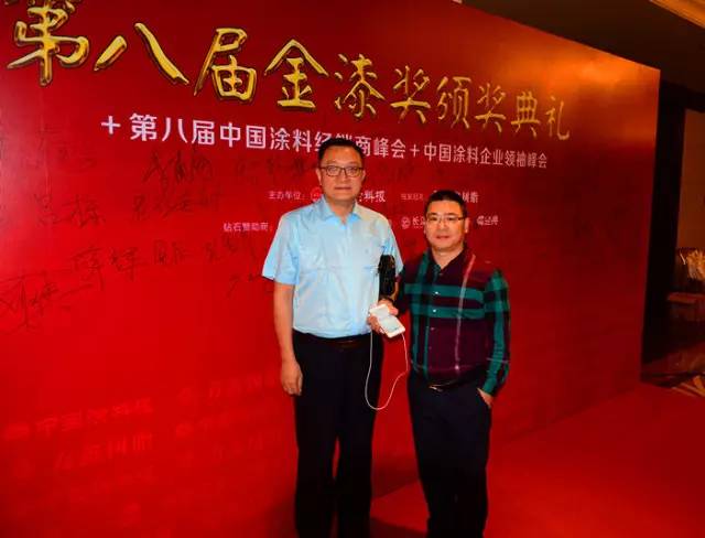 美涂士營銷中心總裁任德忠先生(左)出席第八屆金漆獎與主辦方中國涂料報主編(右)李甫年合影