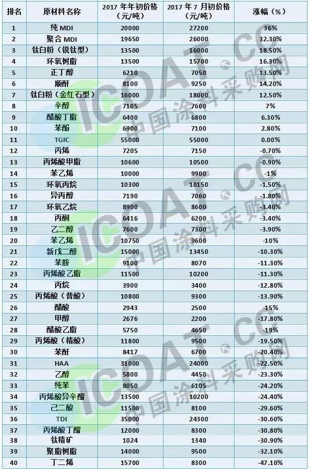 回顧上述原材料的漲跌歷史,TDI曾在2016年,不到10個月的時間狂漲400%,自2016年10月份以來,結(jié)束了瘋漲歷史。在今年,它的上半年累計跌幅達30.6%。丁二烯,曾在2016年全年累計漲幅達210%,漲幅排第一,而在今年上半年跌幅排第一,漲得猛跌得就狠。