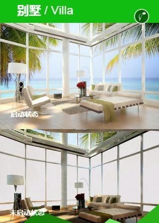 上述視頻中的玻璃窗簾是一款黑科技產品,它彌補了傳統窗簾的不足。在普通的玻璃上涂上一層智能變色涂料,瞬間變成一種神奇的變色玻璃窗簾。如圖: