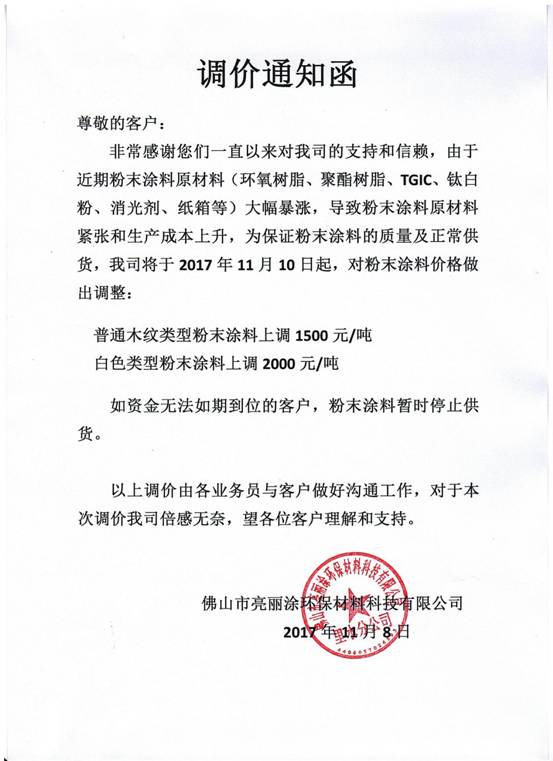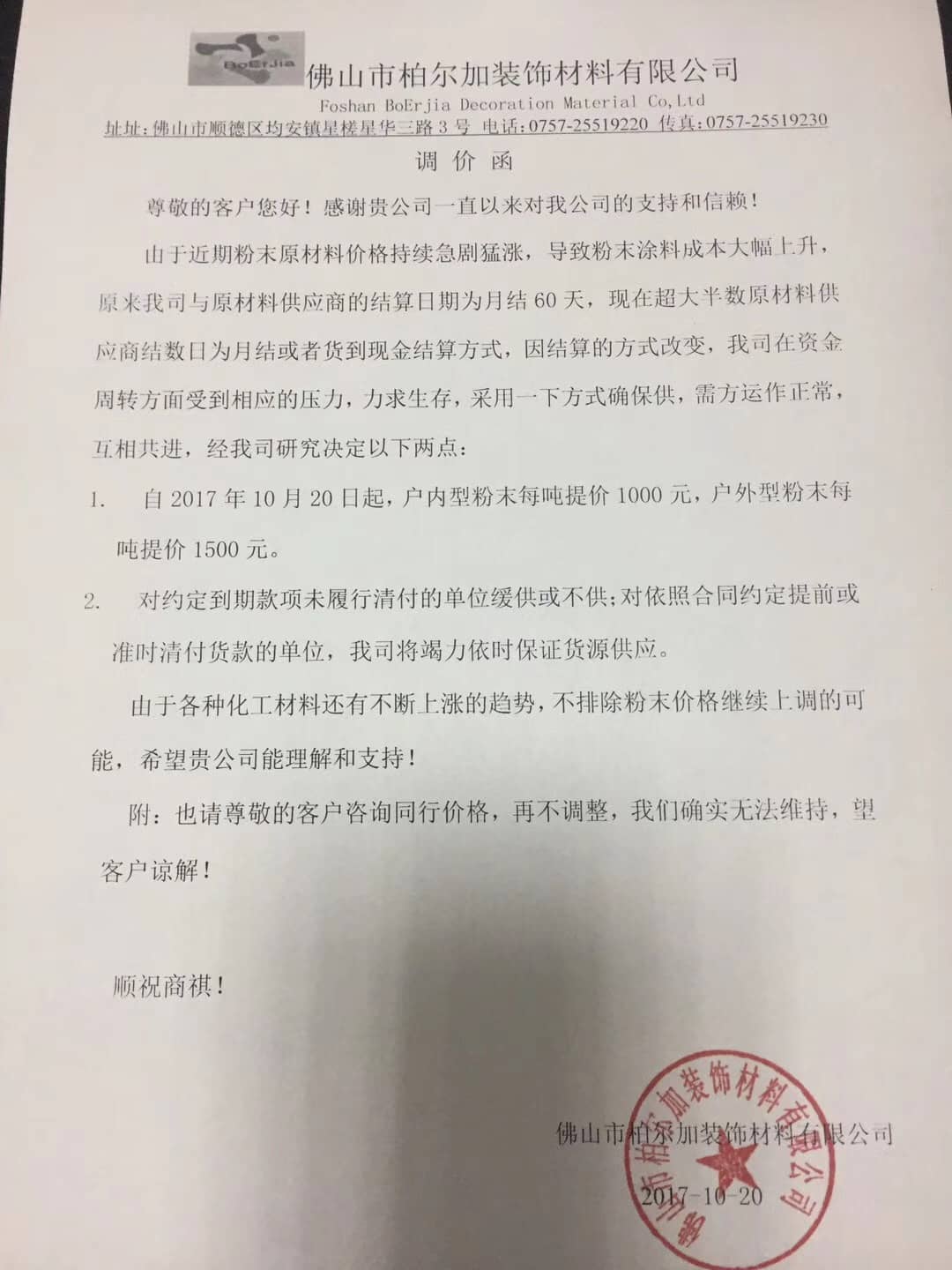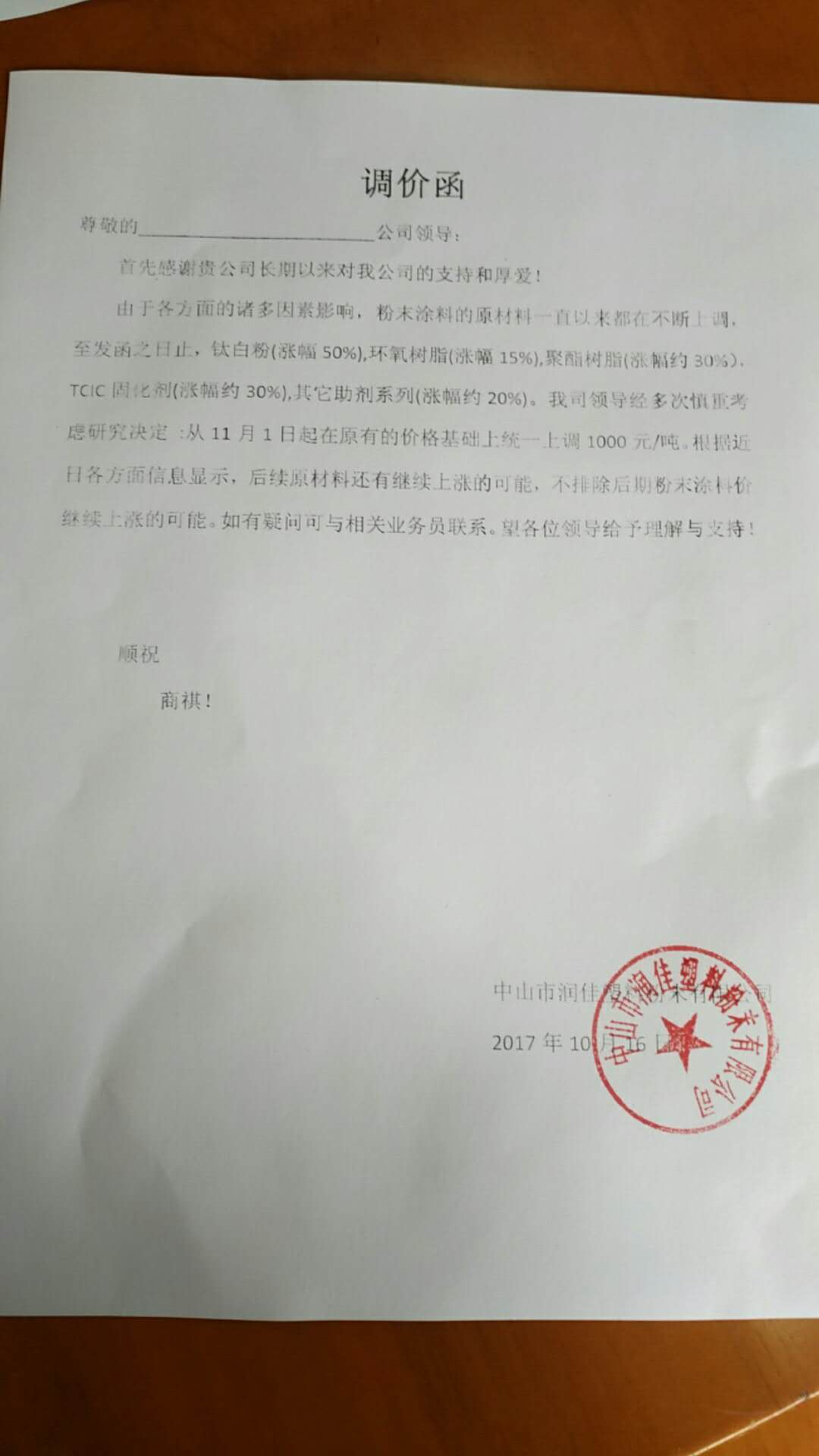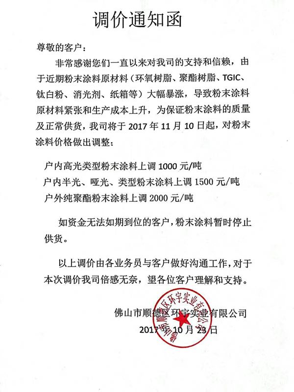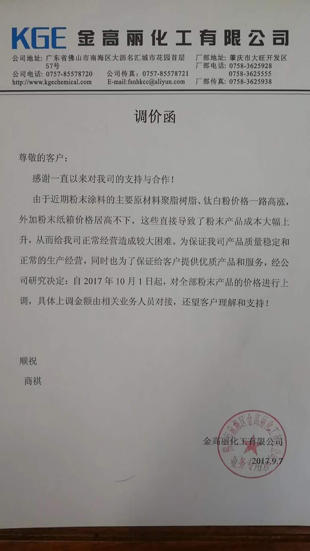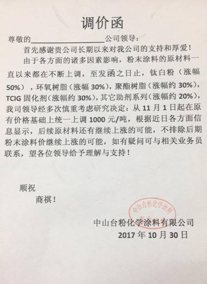 在調研過程中,我們發現,廣東地區部分粉末涂料企業之前曾宣布漲價,但是后續跟進情況并不是很好。