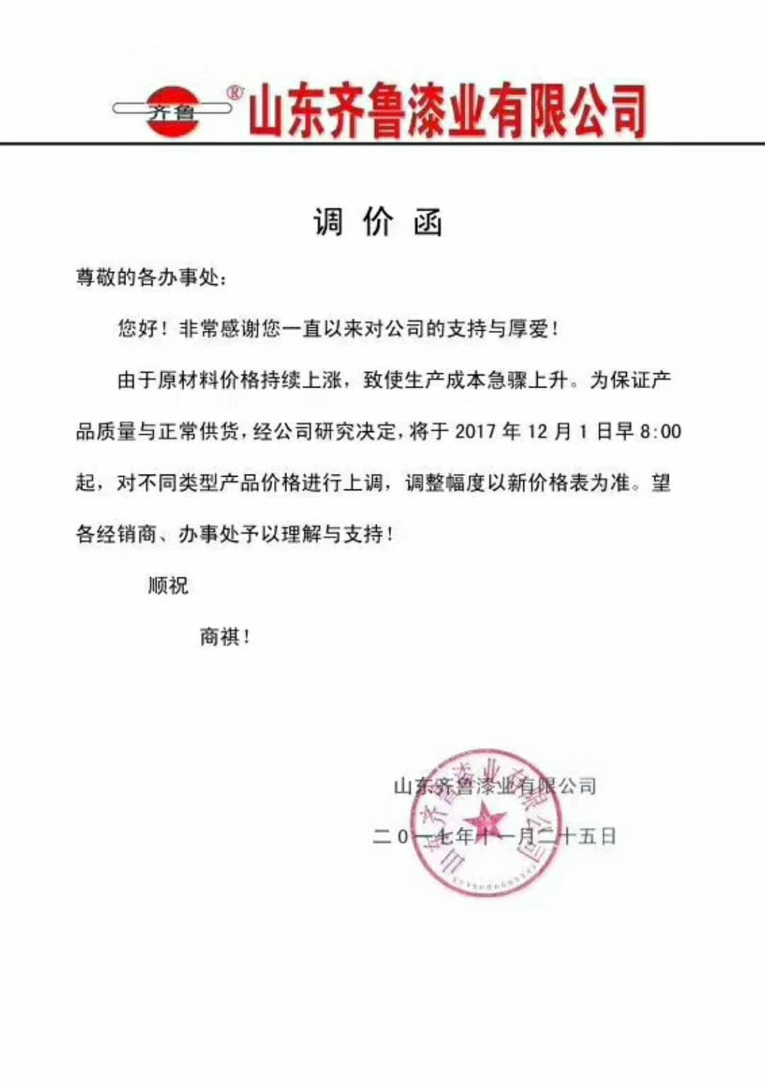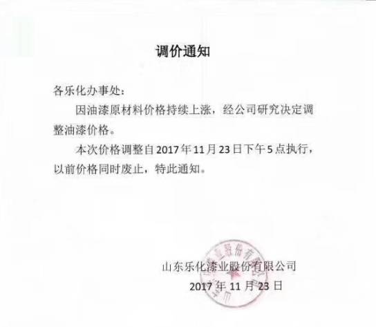 雖然原材料企業(yè)一輪又一輪的漲價,但是下游的涂料企業(yè)卻難有作為。涂料企業(yè)不光漲價難,還有大量的涂料企業(yè)依然在進行惡性競爭,因此涂料企業(yè)紛紛致電涂料采購網(wǎng),希望通過平臺呼吁一下行業(yè)的其他企業(yè),減少同業(yè)惡性競爭,建立行業(yè)的自律性,由于受到原材料漲價和人工成本增加的影響,已經(jīng)造成涂料企業(yè)出現(xiàn)行業(yè)性大面積虧損情況,企業(yè)紛紛呼吁大家理性對待市場,適當(dāng)做一些價格調(diào)整。下圖為部分涂料企業(yè)發(fā)布的漲價信息: