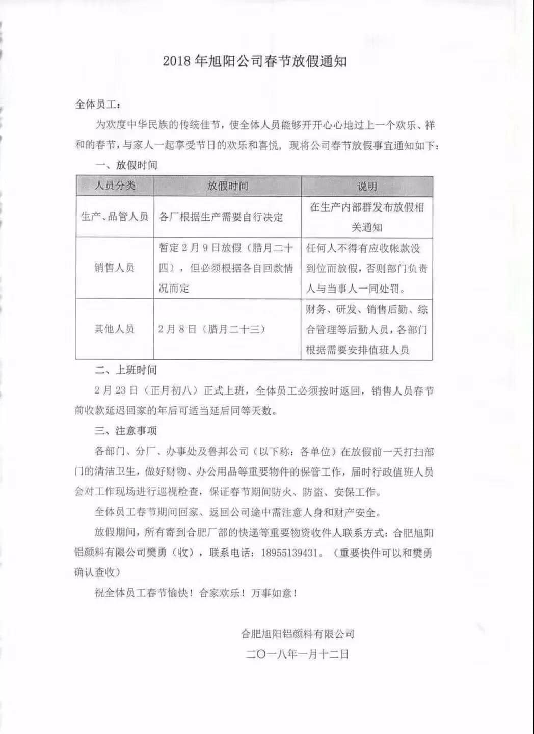 2.合肥旭陽鋁顏料有限公司(放假14-15天)