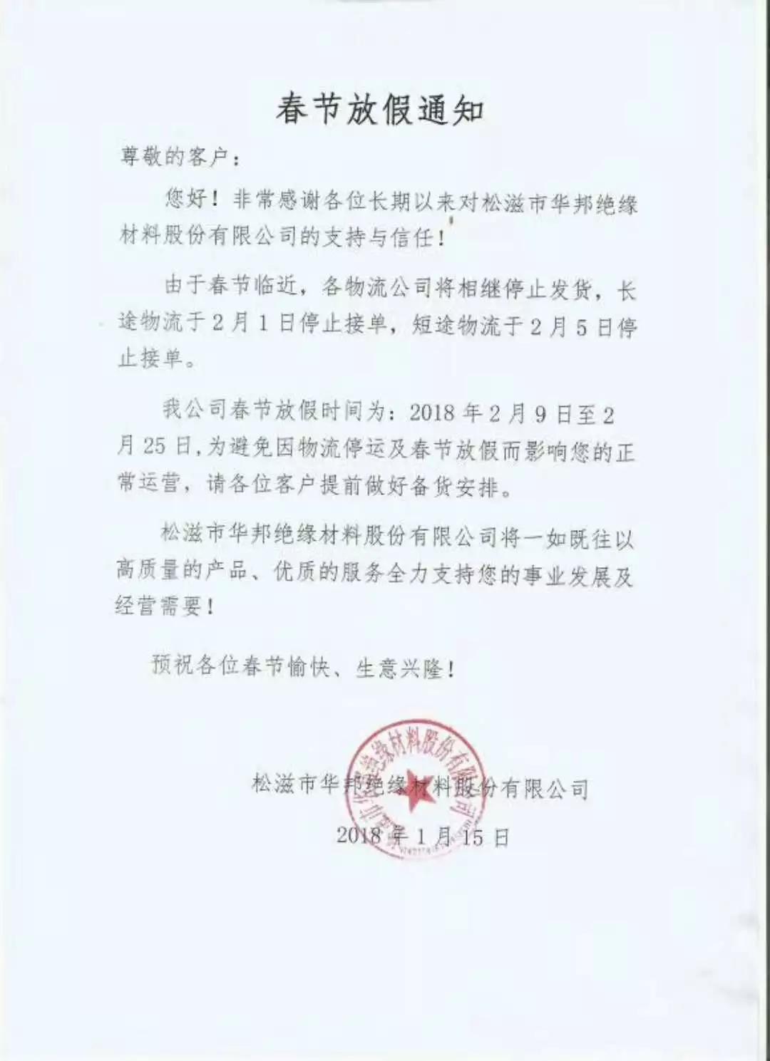 4.松滋市華邦絕緣材料股份有限公司(放假17天)