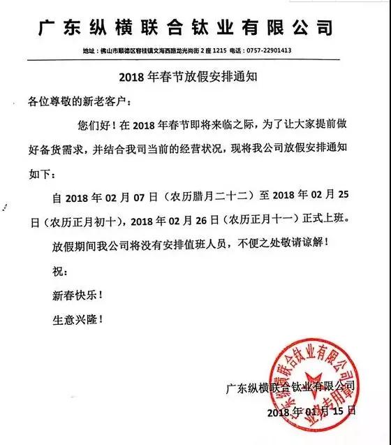 7.廣東縱橫聯合鈦業有限公司(放假19天)