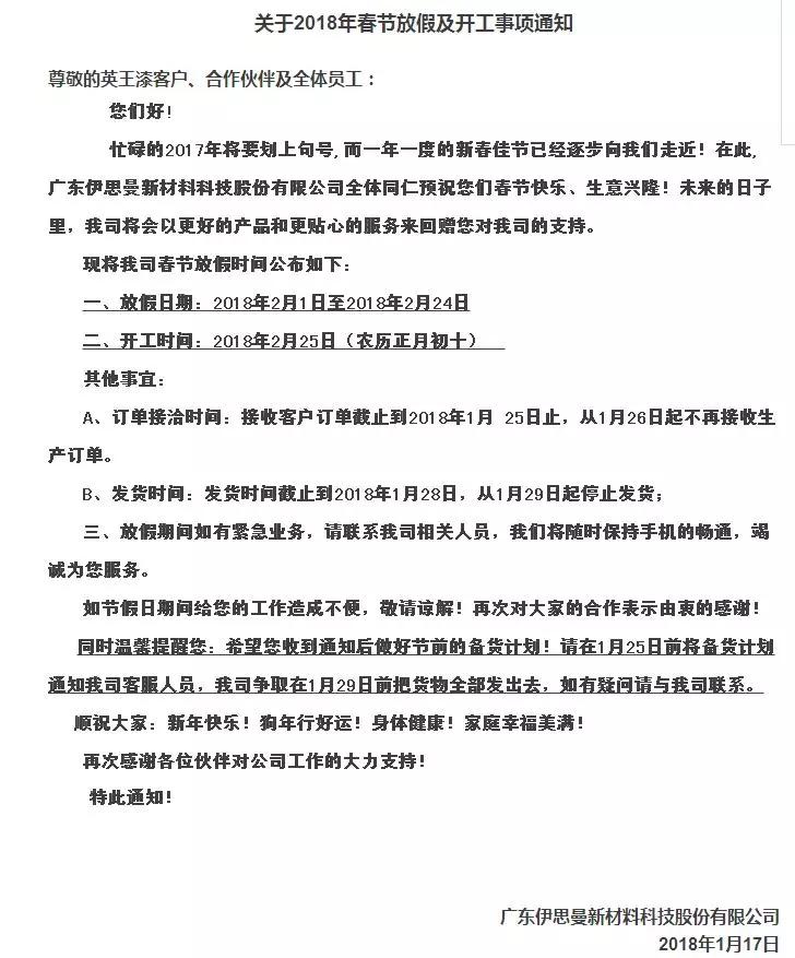 8.廣東伊思曼新材料科技股份有限公司(放假24天)
