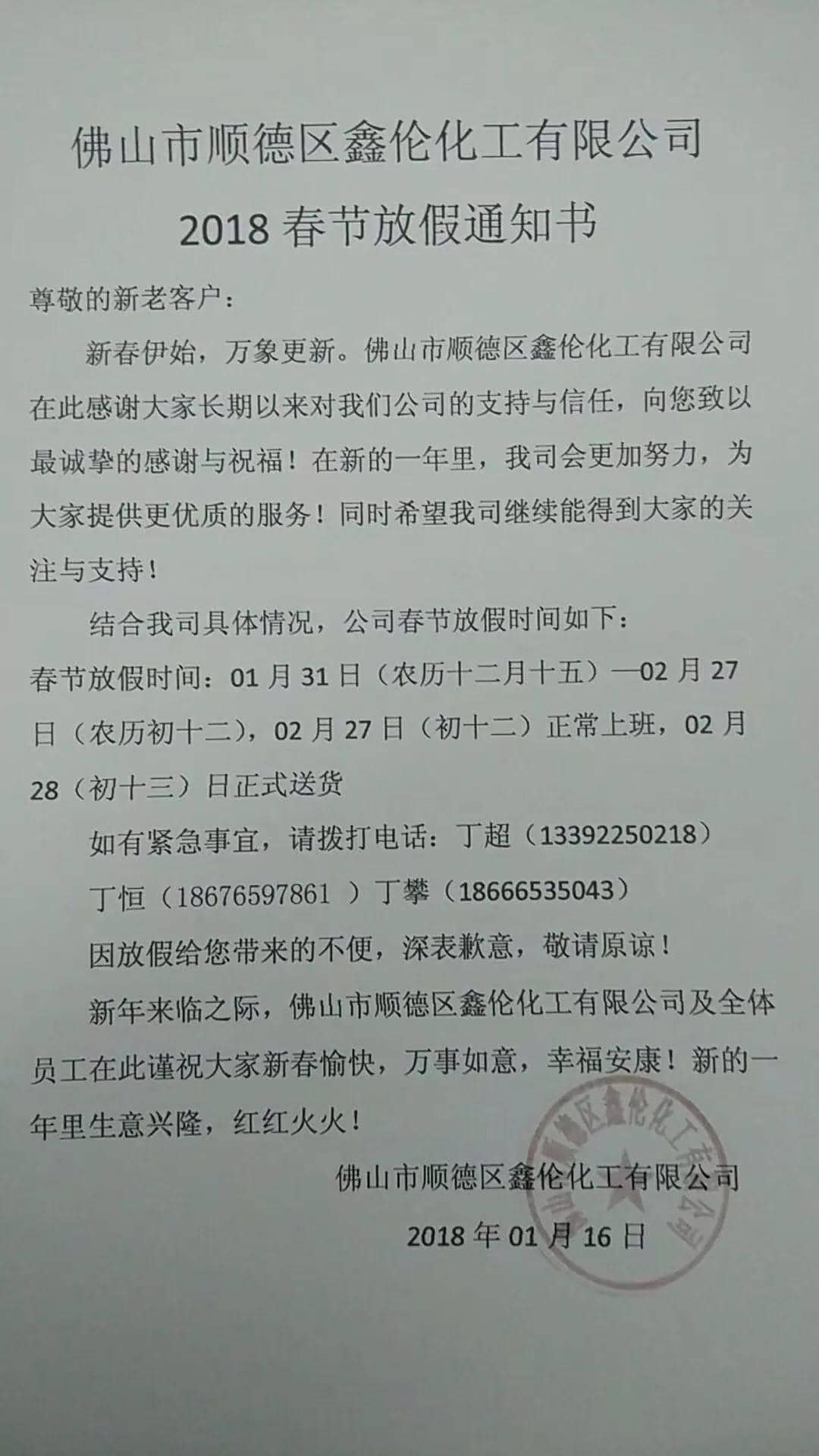 2.佛山市順德區鑫倫化工有限公司(放假28天)
