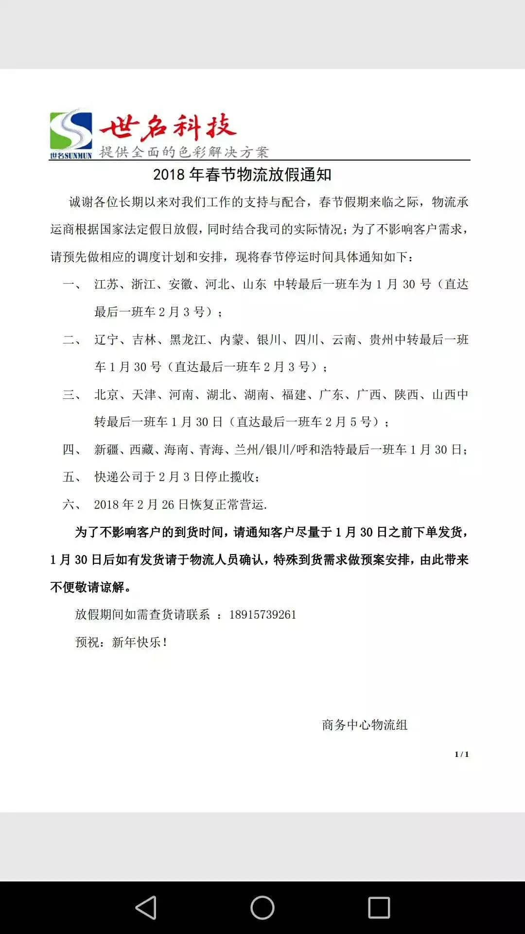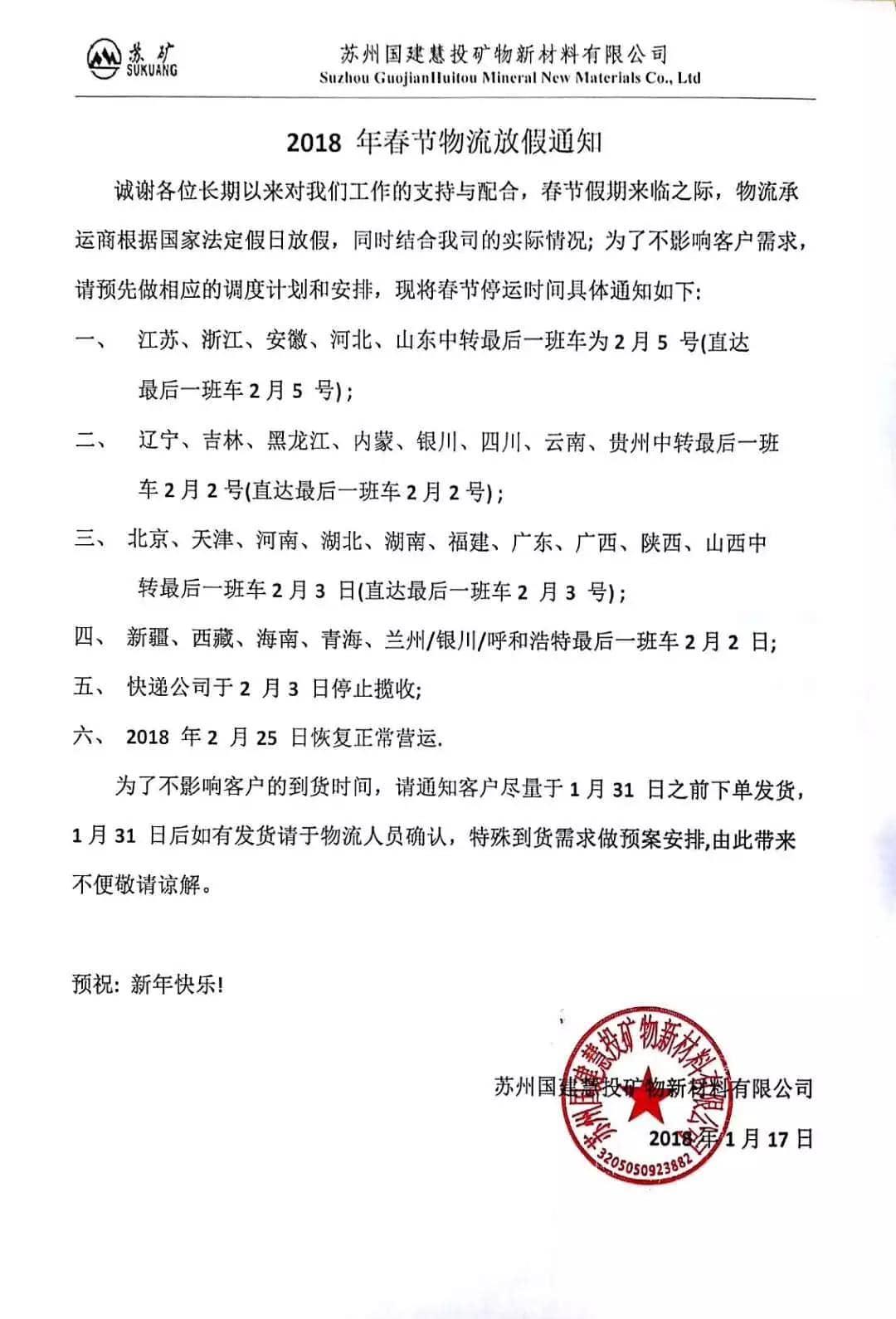 以下物流放假時間由世名科技、蘇州國建慧投礦物新材料有限公司、廣東睿智環保科技有限責任公司下發!