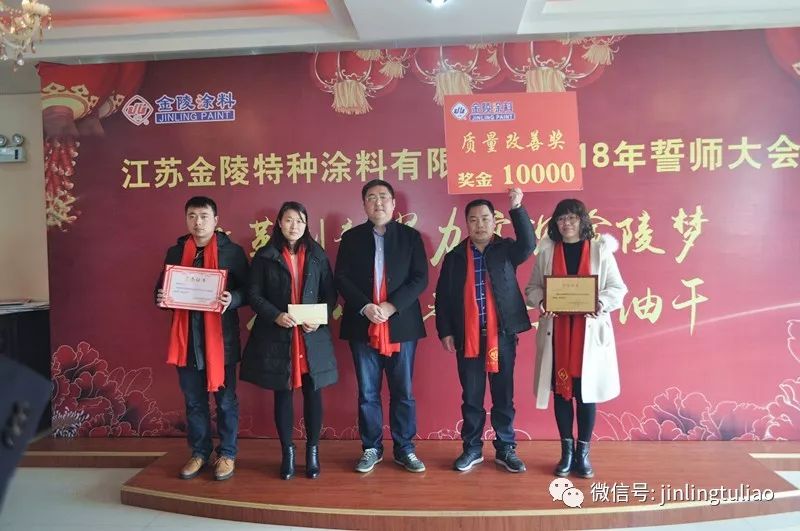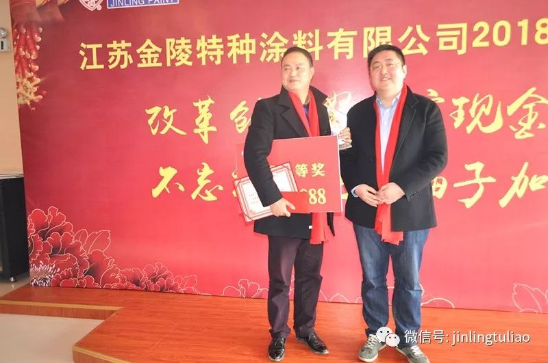 2017年是變革創新的一年,是承前啟后的一年,2017年金陵涂料取得的成績離不開全體員工的努力和付出。為了表彰先進和優秀員工,會上,董事長戴海雄宣讀了19位優秀員工、9位優秀營銷精英以及3個特別獎的名單。優秀員工、營銷精英、特別獎部門等代表紛紛發言表示,要作為公司榜樣,在新的一年里加強自身學習,增強責任意識,為公司的發展獻計獻策、多做貢獻。
