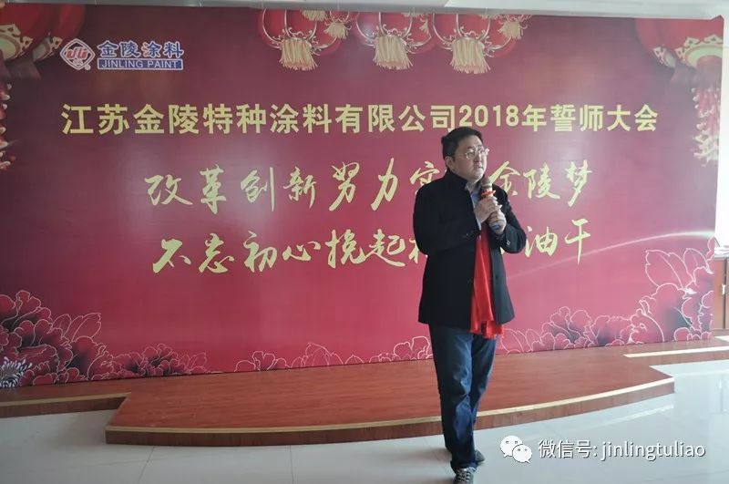 【中國涂料采購網】“不忘初心,挽起袖子加油 ”“2018,金陵涂料,旺旺旺”。2月23日,金陵涂料2018年誓師大會在公司拉開了帷幕。