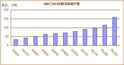 尤其是粉末涂料,據中國涂料采購網了解,我國粉末涂料產量從2003年的33萬噸增長長2013年的159萬噸,在短短十年的時間里,我國粉末涂料生產量增長了5倍,據中國涂料采購網了解,在2013年1303萬噸的涂料產量當中,建筑涂料占到整個涂料行業的56%;其中水性建筑涂料占到整個建筑涂料市場的47%;也就是目前國內建筑涂料行業主要以水性建筑涂料產品為主,溶劑型建筑涂料的市場份額僅占9%,“水進油退”的發展趨勢已非常明顯。粉末涂料和水性涂料的快速發展壓縮了一大部分溶劑型涂料產品的市場。