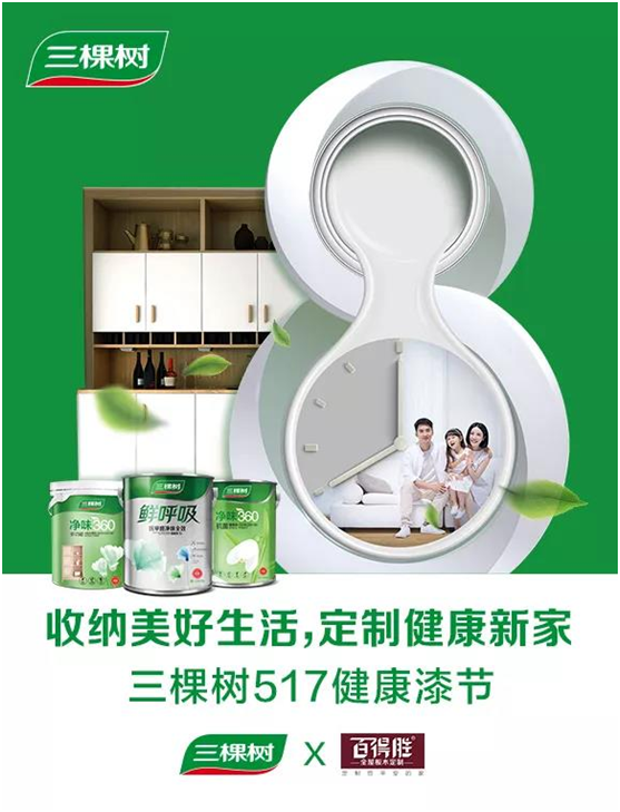 讓你擁有一個健康的家,而且只要8小時。這一次的5.17健康漆節,三棵樹找來了國內首屈一指的家政服務平臺好慷和旨在定制平安家的品牌家居百得勝。本土IP的強強聯盟,不僅令健康生活的概念更深入人心,更實現了IP聯合的捆綁營銷,對品牌而言,IP的聯合更是一個保持IP活力和持久曝光的新方式。