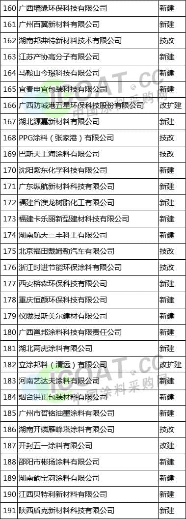 2018年1月~11月部分水性涂料及原材料建設(shè)項(xiàng)目