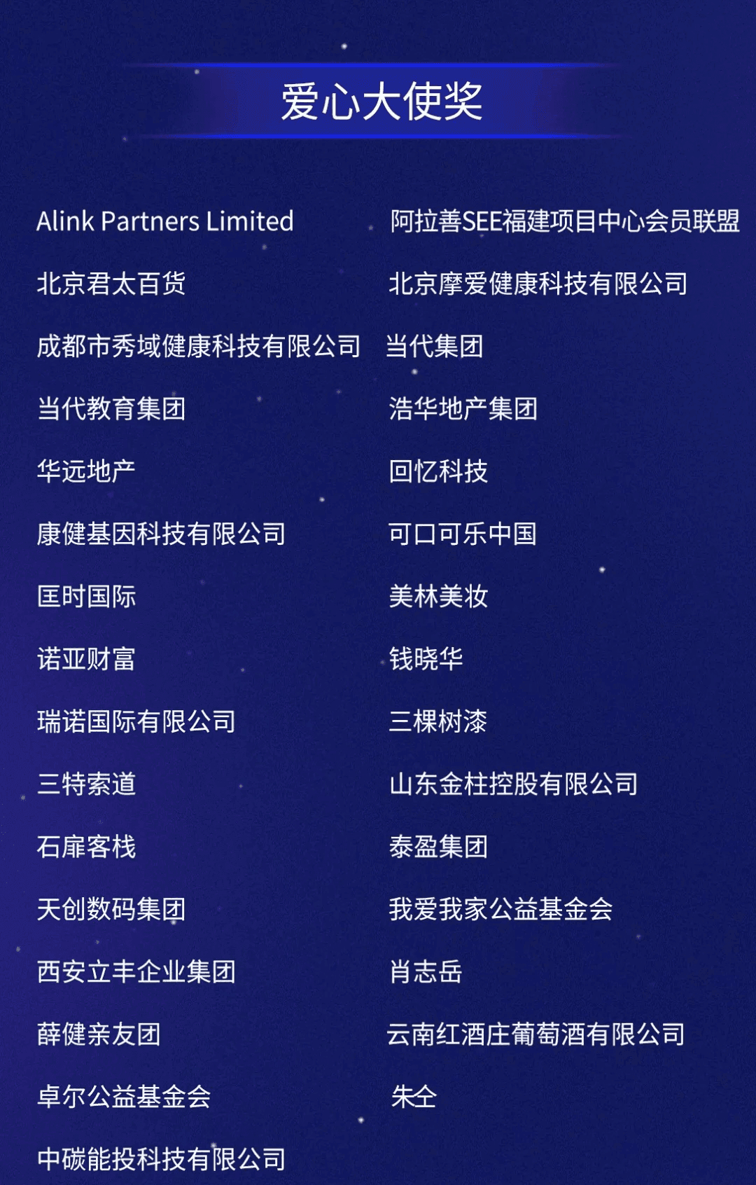 (卓越貢獻獎——表彰為阿拉善SEE基金會銀行捐贈500萬以上的愛心企業(yè)及個人)