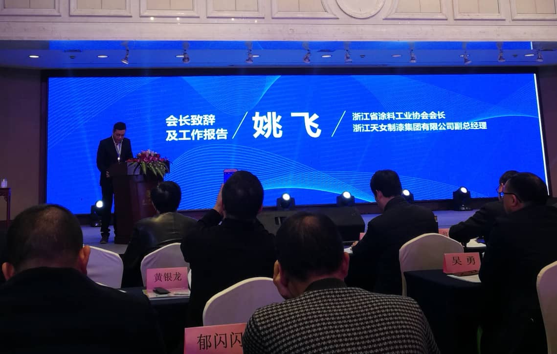 會議伊始,浙江省涂料工業協會會長單位、浙江天女制漆集團有限公司副總經理姚飛作2018年度工作報告和2019年工作要點宣講。