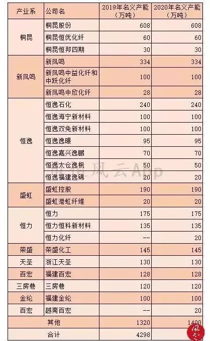 在滌綸的產(chǎn)能中,桐昆、新鳳鳴、恒逸、盛虹、恒力為前五大生產(chǎn)商,2019/2020年的產(chǎn)能約國內(nèi)總產(chǎn)能的54%左右。