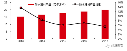 行業(yè)增速逐步放緩。隨著我國建筑業(yè)投資增速的放緩,防水材料行業(yè)規(guī)模增速中樞持續(xù)下移。防水材料產(chǎn)量年均增速從2008-2013年的14.5%滑落至2014-2017年6.7%的水平。目前我國城市化率已接近60%,城市化進(jìn)程進(jìn)入中后段,建筑業(yè)投資長期呈放緩趨勢,防水材料行業(yè)增速將進(jìn)入中低速增長階段。
