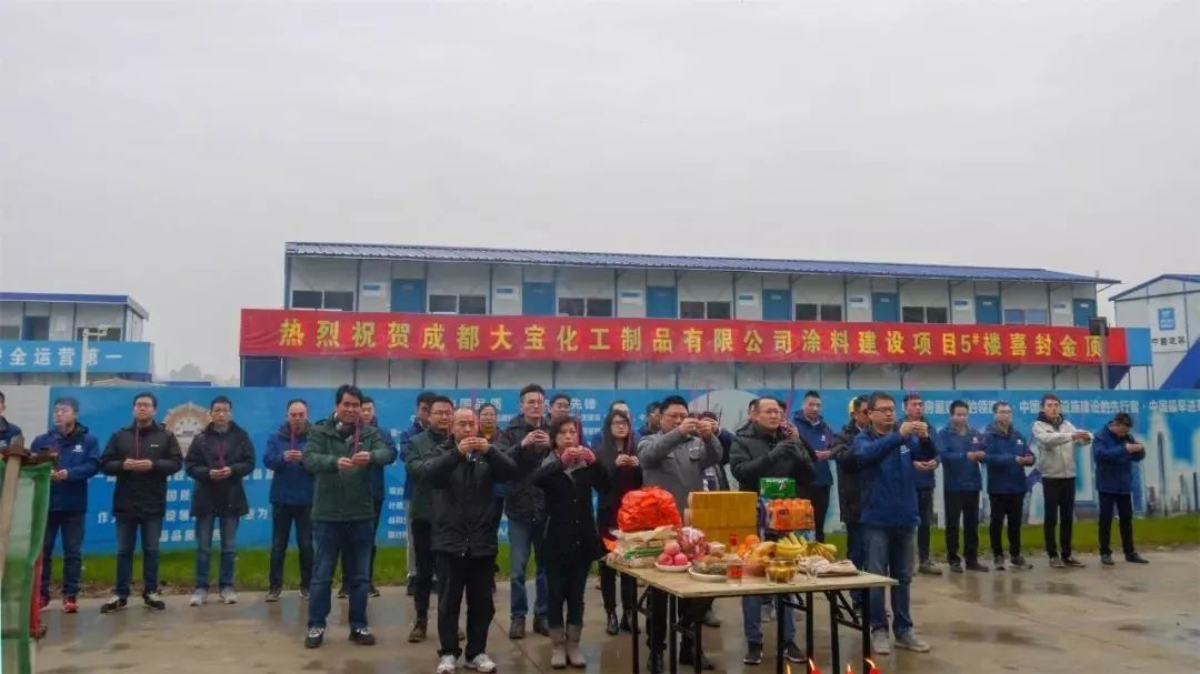 經過多年的深耕布局,大寶在工業木器涂料及家裝木器涂料領域銷量位居國內前列,業務遍及全球各地,成為木器漆領域的佼佼者。在新的發展時期下,大寶也不斷謀求新的發展,不斷擴大涂料產品線,布局市場。隨著最后一塊頂板的順利澆筑,成都大寶化工制品有限公司一期綜合樓建筑主體結構喜迎封頂,標志著大寶漆成都基地建設進一步完善。2019年1月4日,在大寶漆成都新廠區基地隆重地舉行了綜合樓封頂儀式,成都大寶化工制品有限公司業務總監鄭開國、財務部主管游雅蘭、成都辦事處副理簡佑成、廠務部副理袁金平、技術部課長劉柏志、籌備處專員賴俊良、中建一局項目經理仇宏海及團隊、信息產業電子第十一設計研究院科技工程股份有限公司、四川精工勘測基礎工程有限公司等代表出席,一起見證大寶漆在成都這片沃土上展開騰飛之翼。