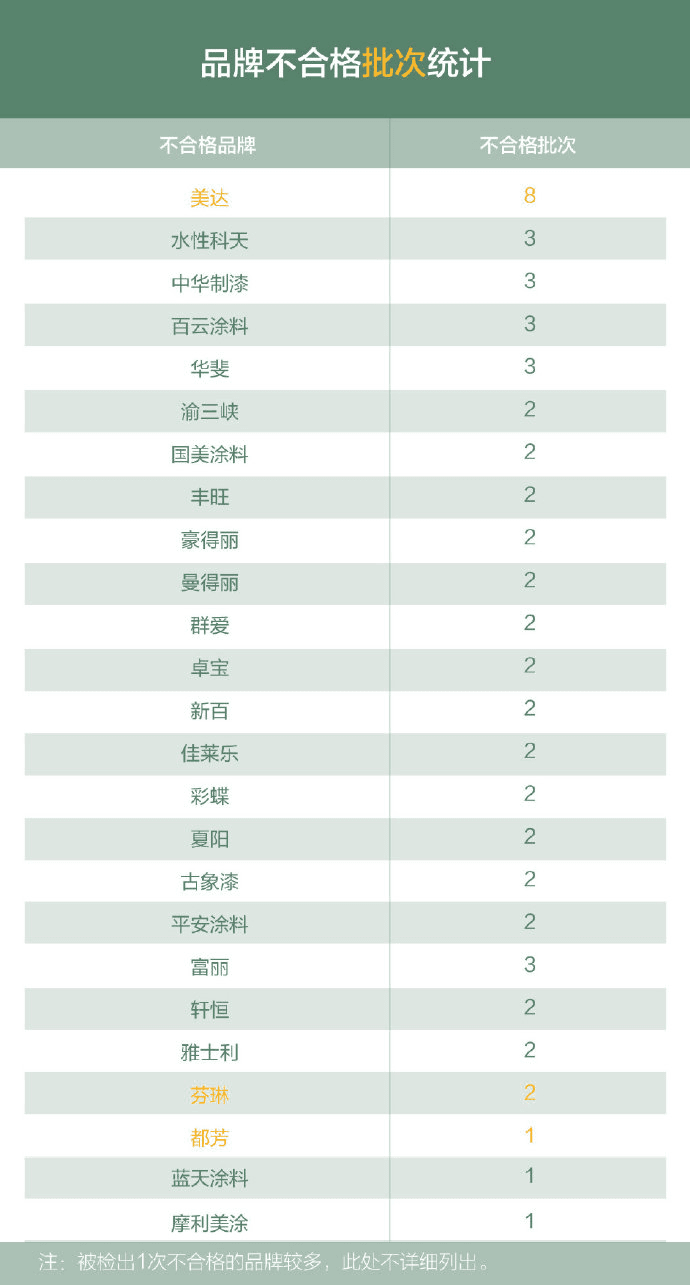 另外,多款乳膠漆都通過300次的耐洗刷性測試。若耐洗刷性不達標,在使用中會造成產品的使用壽命縮短,出現墻面脫層、掉粉等現象。