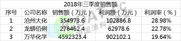 以下為部分化工企業(yè)2018年前三季度利潤(rùn)額: