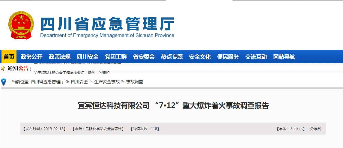 經(jīng)調(diào)查認(rèn)定,宜賓恒達(dá)科技有限公司“7•12”重大爆炸著火事故是一起生產(chǎn)安全責(zé)任事故。