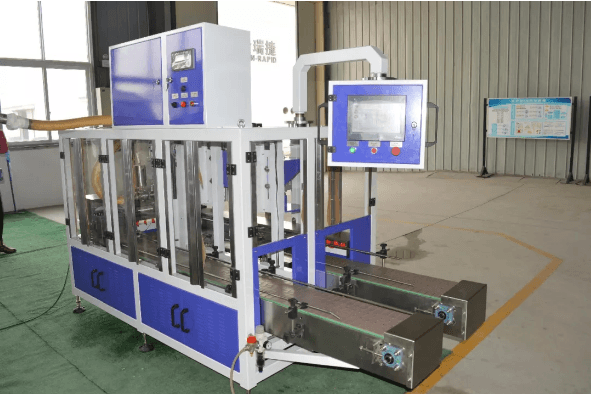 目前國內存在的5L自動灌裝機一般是直線型的,該直線型設計存在以下局限性:設備較長至少需要兩個人操作,即一個人在前端放入容器,另一個人在后端將灌裝、加蓋完成的容器取走;設備不封閉,存在安全隱患;由于設備不封閉,物料揮發物的無法控制,不容易做到無害化生產。
