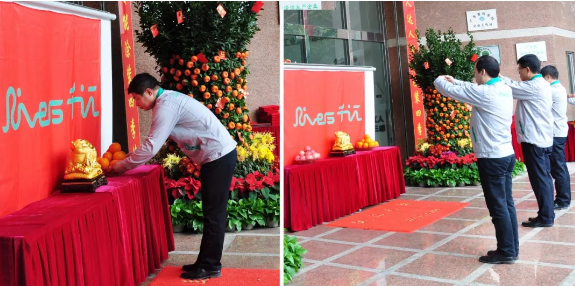 在全體員工頌唱孔子歌曲《有朋自遠方來》歌聲中,儀式正式開始。
