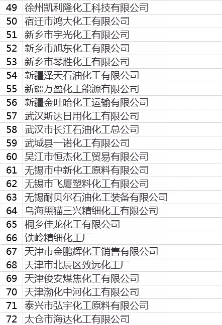 根據(jù)中華人民共和國(guó)最高人民法院公布的數(shù)據(jù)顯示,截止2019年2月27日,全國(guó)失信被執(zhí)行人高達(dá)12800000例之多,較之2018年12月份12720122人對(duì)比,在僅僅不到三個(gè)月時(shí)間內(nèi),就有79878人被列入失信被執(zhí)行人名單中,這相當(dāng)于每個(gè)月就有26000多人被列入失信被執(zhí)行人名單中,每一天至少就有280多個(gè)人“人設(shè)崩塌”。而在這“人設(shè)崩塌”的背后,企業(yè)被列入失信執(zhí)行人名單的也不在少數(shù),僅2019年1、2月份的化工企業(yè)高達(dá)300多家,部分失信化工企業(yè)名單如下: