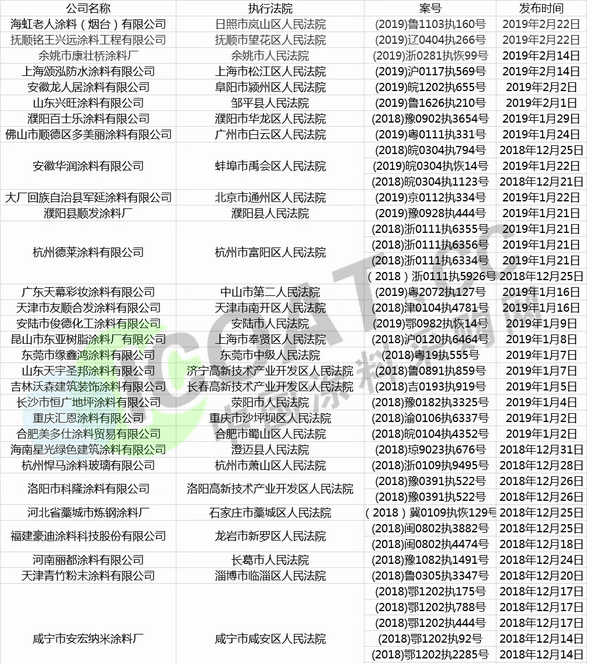 而涂料化工企業(yè)在這三個(gè)月不到時(shí)間內(nèi)被列入失信執(zhí)行人名單中的企業(yè)就占據(jù)近30家之多,部分被執(zhí)行人名單如下: