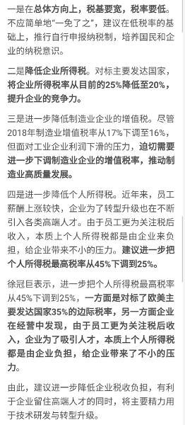 人大代表徐冠巨:建議個人所得稅最高稅率從45%下調到25%。