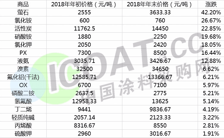 2019年春節(jié)剛過,各種原材料漲價函漫天飛舞,原材料價格的持續(xù)上漲,即使在市場需求較為低迷的情況下,涂料原材料企業(yè)也是賺的盆滿缽滿,回顧2018年度部分原材料漲價榜不難發(fā)現(xiàn),部分原材料漲幅同比趨緩,部分原材料企業(yè)盈利水平同比也出現(xiàn)了一定程度的下滑。
