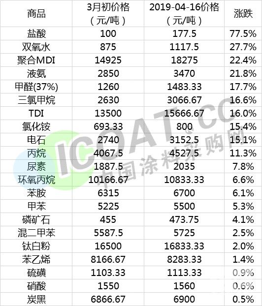 染料中間體的大幅上漲,影響的是整個化工產業鏈,部分原材料自3月以來一直持續處于上漲狀態,以下為部分化工原材料3月初至今價格漲幅榜: