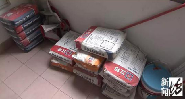 如今裝修現場,依舊放著十幾包立邦牌輔材,分別有多功能找平砂漿、大理石材瓷磚膠、通用防水涂料,全部過期了。以多功能找平砂漿為例,生產日期為2017年9月,有效存儲期則寫著12個月,顯然已經過期近一年了,其它產品也大抵相同。