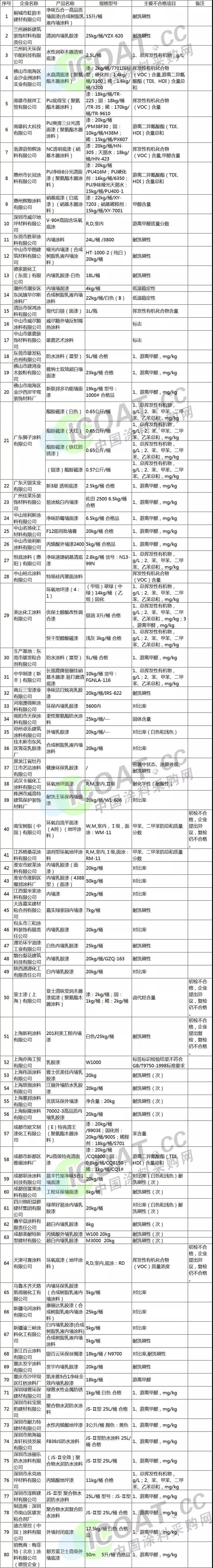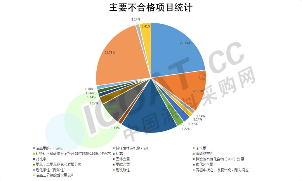 從不合格項(xiàng)目來看,耐洗刷性、對比度、游離甲醛等成為本次公布的主要不合格項(xiàng)目。耐洗刷性是反映涂料產(chǎn)品使用壽命的主要指標(biāo)。涂料產(chǎn)品的耐洗刷性不合格會使產(chǎn)品的使用壽命縮短,在涂料采購網(wǎng)對某些涂料企業(yè)走訪的過程中了解到,企業(yè)老板認(rèn)為,引發(fā)此項(xiàng)不合格的主要原因是配方不合理,乳液選料或助劑選用不當(dāng)?shù)取?/p>