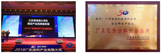 5月20日,在廣東省涂料行業協會成立三十周年表彰大會上,金宗機械領到一個沉甸甸的獎牌——廣東優秀涂料設備品牌。榮譽,引起了我們更多的思考。