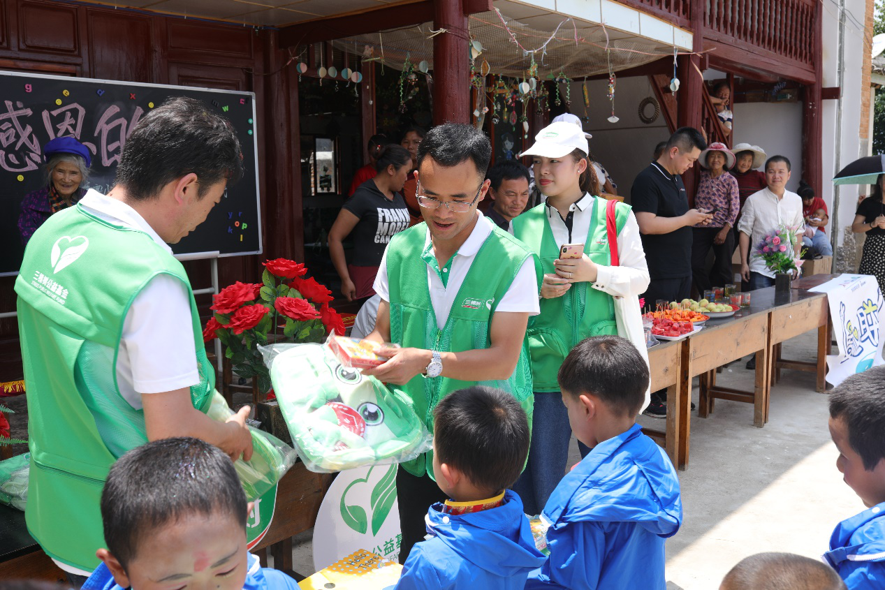 當天,由三棵樹騰沖地區合作伙伴、云南省區銷售團隊和三棵樹總部人員等代表組成志愿者公益小組,與九牧、特步的志愿者們一起前往馬蹄寨小學,和該校孩子們提前度過一個不一樣的“六一”。志愿者給孩子們帶去了各類學習、生活用品。