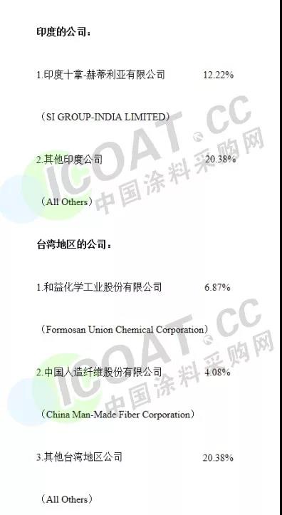 據涂料采購網不完全統計,自2019年1月1日以來,中華人民共和國商務部先后針對37個國家、地區的17種產品實施了反傾銷調,這其中包括部分化工產品。國家商務部針對部分國家實施反傾銷調查和加征關稅,為國內民族企業的發展提供了一個健康的發展環境。