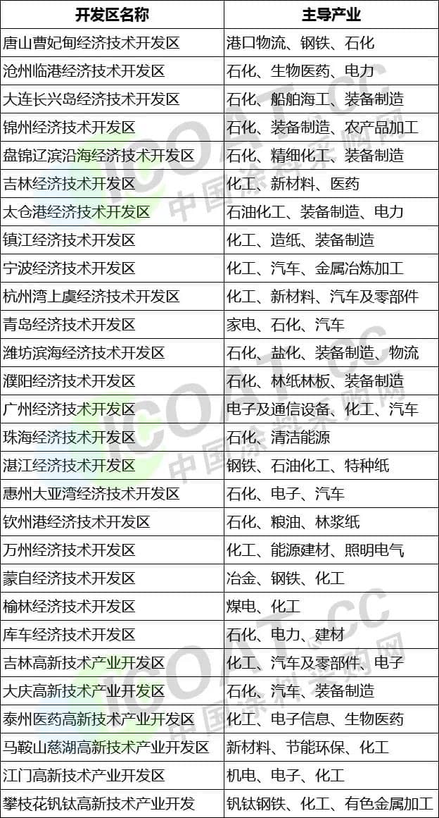 以下為涂料采購網整理的部分國家級化工園區的名單: