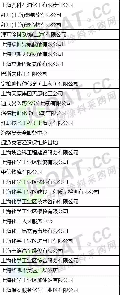 據(jù)涂料采購(gòu)網(wǎng)了解,以上八個(gè)督察組涉及到的6個(gè)省市中,化工企業(yè)分布數(shù)量均較多,覆蓋面也非常廣,其中不乏拜耳涂料系統(tǒng)(上海)有限公司、上海巴斯夫聚氨酯有限公司、上海亨斯邁聚氨酯有限公司、迪氏曼醫(yī)藥化學(xué)(上海)有限公司、齊魯制藥(海南)有限公司等知名公司,以上6個(gè)省(市)地區(qū)化工企業(yè)近4000家。以下為涂料采購(gòu)網(wǎng)整理的6個(gè)省市的部分化工企業(yè)名單。