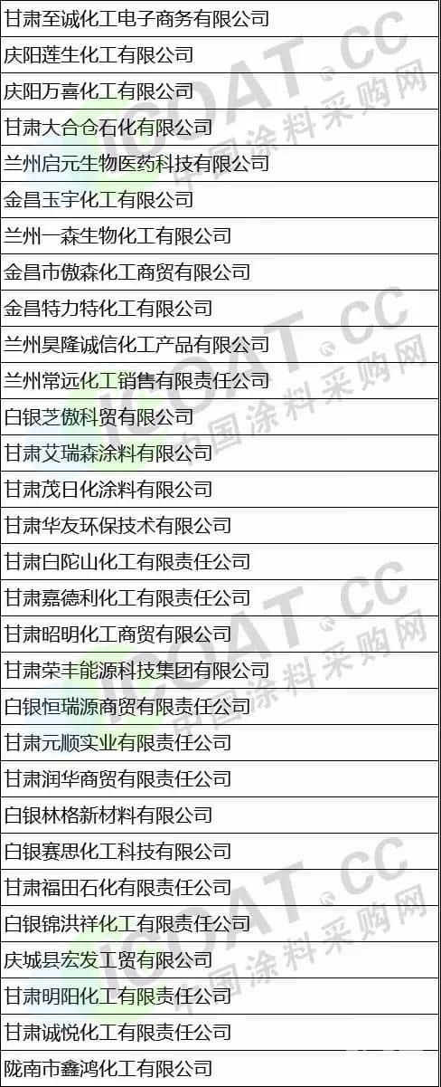 (以上數(shù)據(jù)來(lái)源于涂料采購(gòu)網(wǎng)信息中心,如有差池,請(qǐng)以實(shí)際名單為準(zhǔn)!)