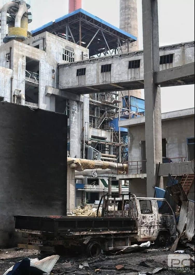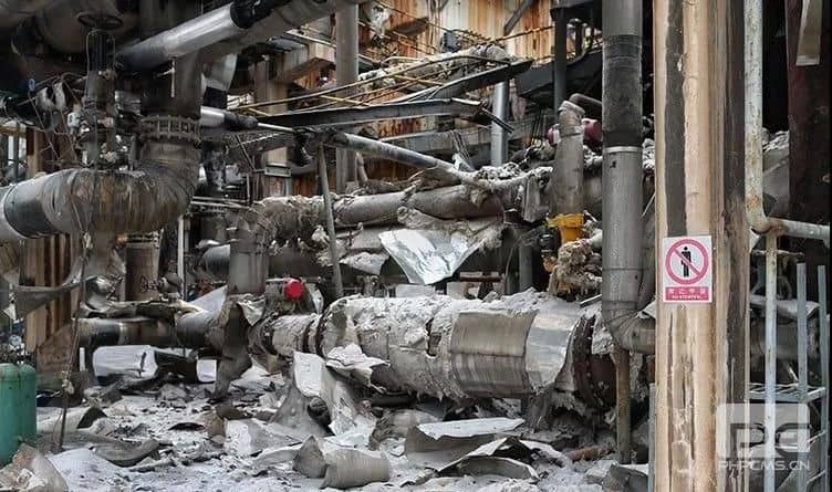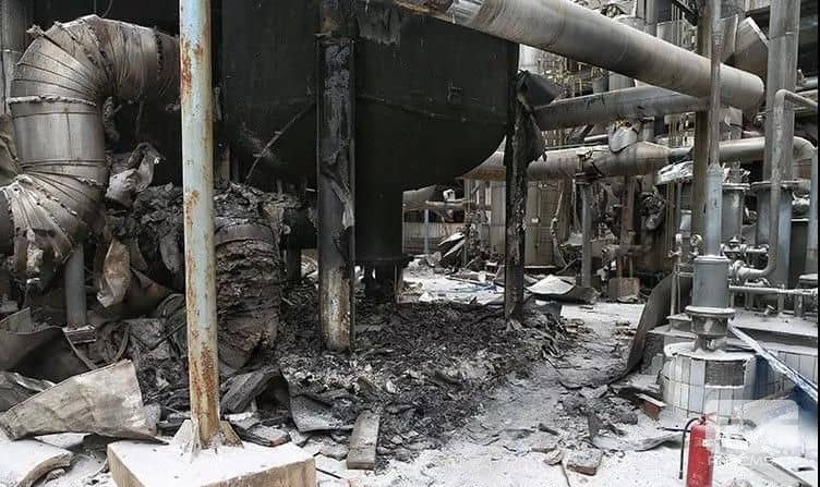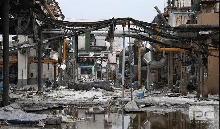 廠區內,爆炸灼燒后的工業設施。