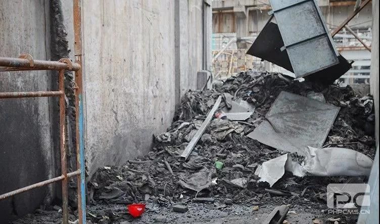 廠區內,渣土遍地,還散落著工人的安全帽。