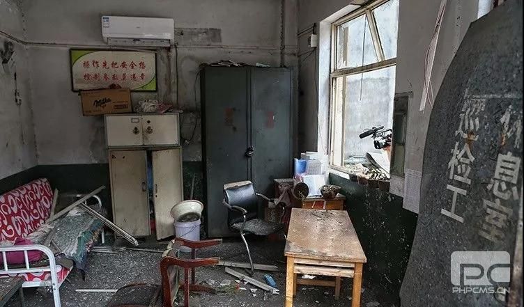 廠區內的巡檢工休息室,滿目瘡痍。